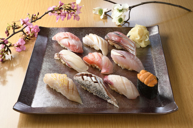 伝統的な江戸前の技法を用いて握られた寿司が楽しめます。シャリは米酢と赤酢を独自の配合でブレンド。四季折々のネタがズラリと並び、“食”から季節を感じていただけるよう、趣向を凝らして皆様をおもてなしさせていただきます...。